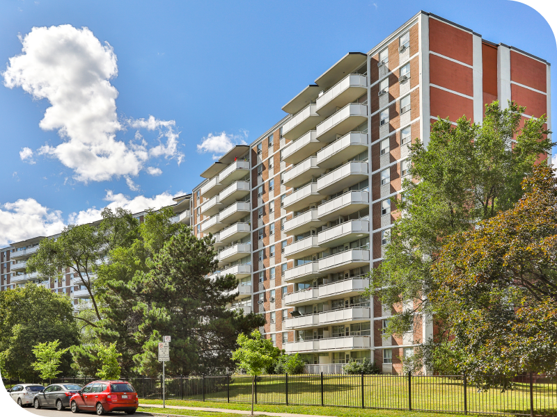 The buildings are in North York, Toronto, at the Victoria Park Avenue and Rowena Drive intersection, near many neighbourhood amenities. You will find yourself close to shopping malls, churches, the library, and public transport right outside your door on Highway 401 and DVP. We design our suites to be spacious, bright, and clean. They have plenty of storage and closet space. The new touches include freshly painted walls and refinished hardwood floors.