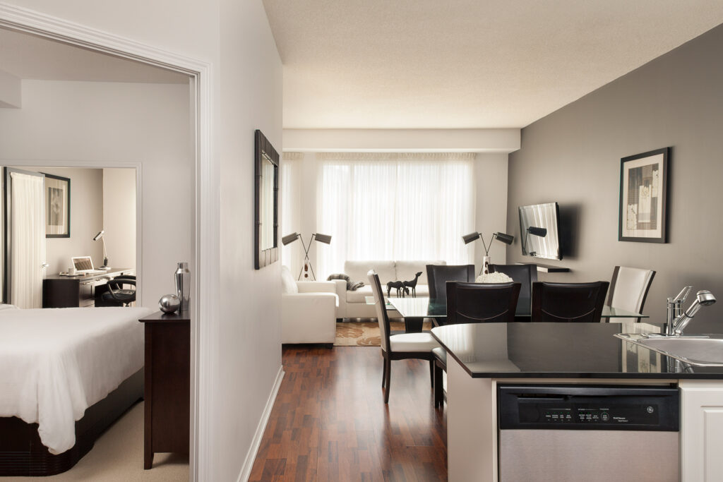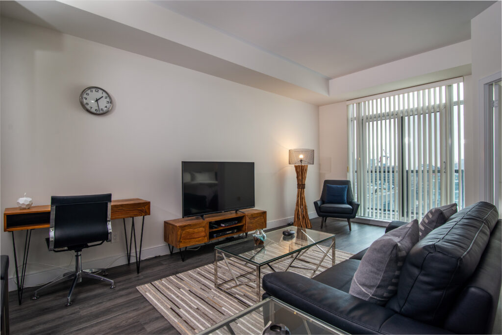 Hotel luxury with all the comforts of home. Sophisticated urban living in the heart of the 6ix. Rooftop patio with a view. World-class architecture. It boasts premium-class amenities, and a superb range of furnished and unfurnished luxury residences in the heart of Toronto, one of the world’s most multicultural cities. Short and long-term contracts are available for Studio, 1-bedroom and 2-bedroom suites, located at the corner of John and Wellington Streets, steps away from local attractions like the CN Tower, Rogers Centre, restaurants, world-class theatres, and cosmopolitan nightlife in the heart of the Theatre and Financial Districts. Flexible cancellation policy.